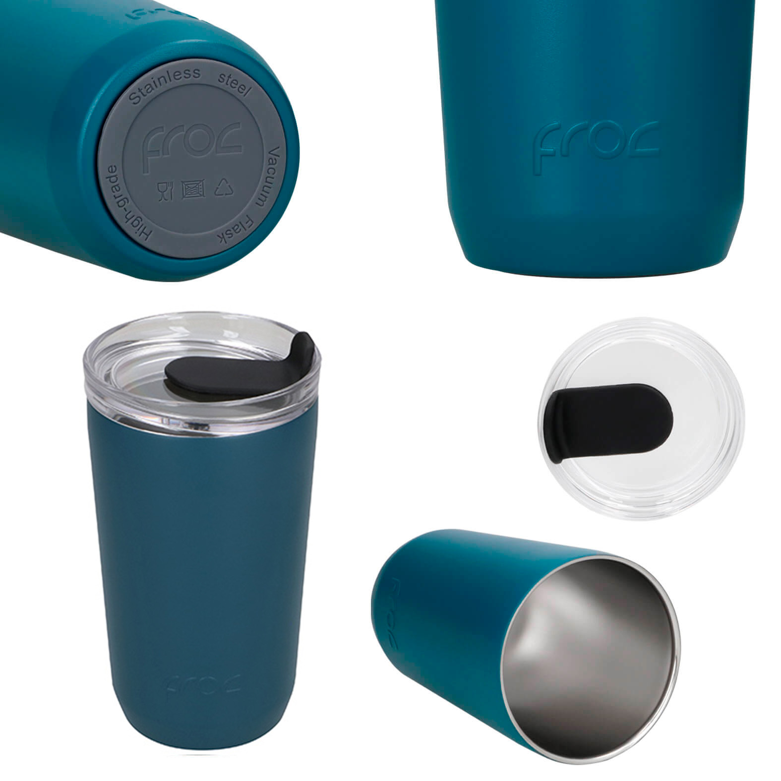 FROC Termo con doble pared de acero inoxidable insulado al vacio con tapa de silicón y base antiderrapante.