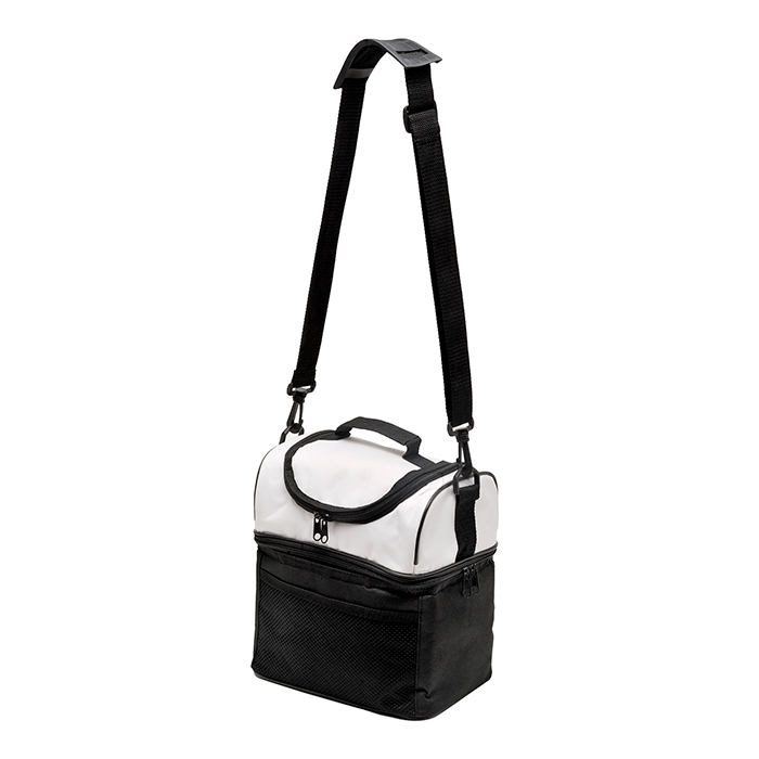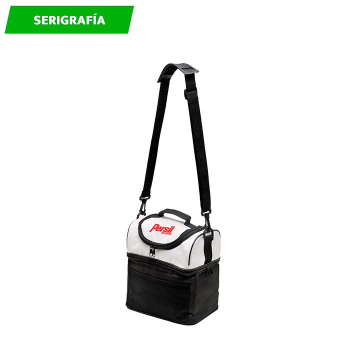 Lonchera doble. - Lonchera fabricada en nylon resistente, lo que le confiere durabilidad y resistencia al desgaste. Cuenta con dos compartimentos separados, uno diseñado específicamente para mantener los alimentos fríos y otro para mantener los alimentos calientes, incluye una correa de hombro ajustable, lo que facilita su transporte, cuenta con un asa resistente en la parte superior, brindándote otra opción de transporte cuando lo prefieras, frente de la lonchera, encontrarás una bolsa tipo red que te permite guardar utensilios.