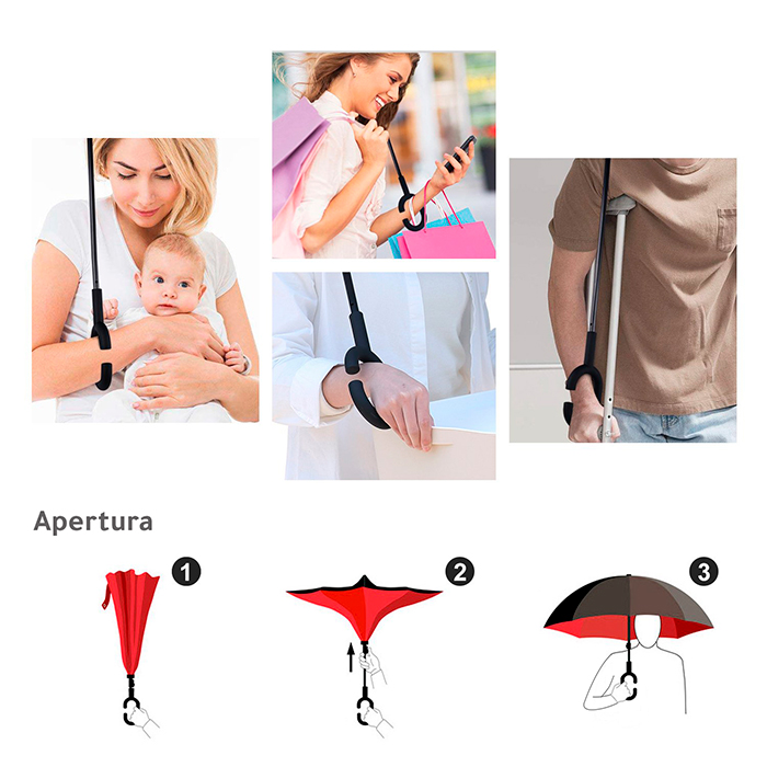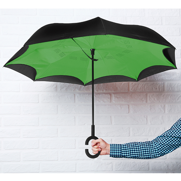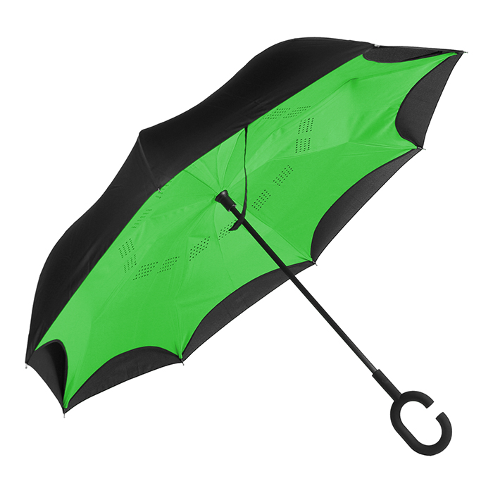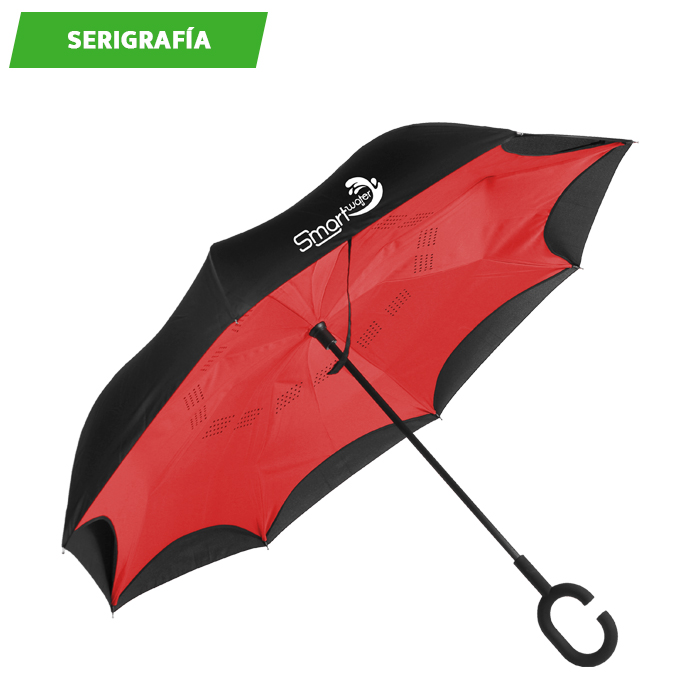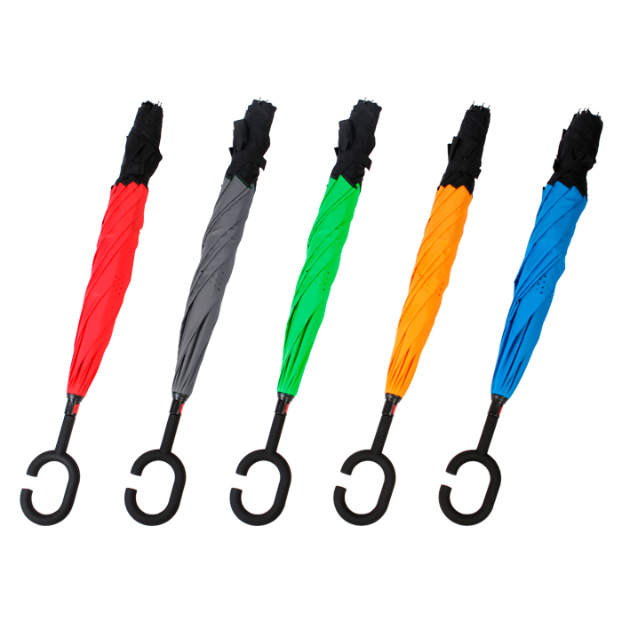 Paraguas invertido bi-tono. - Paraguas invertido bi-tono automático fabricado en pongee con 8 gajos, color exterior negro con interiores a color.