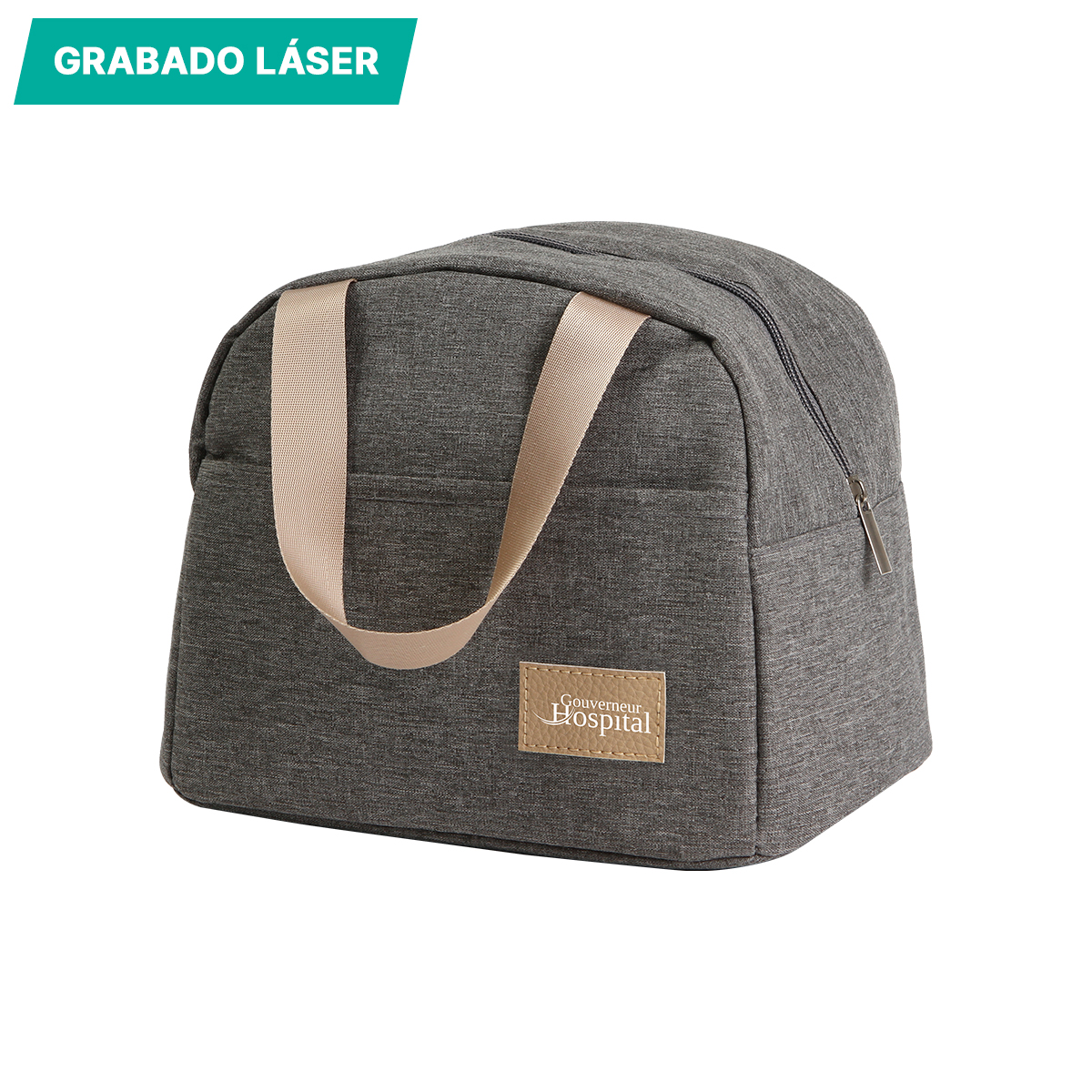Lonchera Ambon. - Lonchera fabricada en poliéster catiónico con forro de aluminio, Correas de nylon, bolsillo frontal y detalle en curpiel.