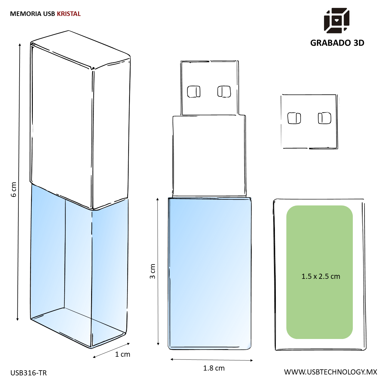 Memoria USB con estilo clásico y vanguardista fabricada en cristal (se ilumina en color rojo) y tapa de metal con acabado cromo