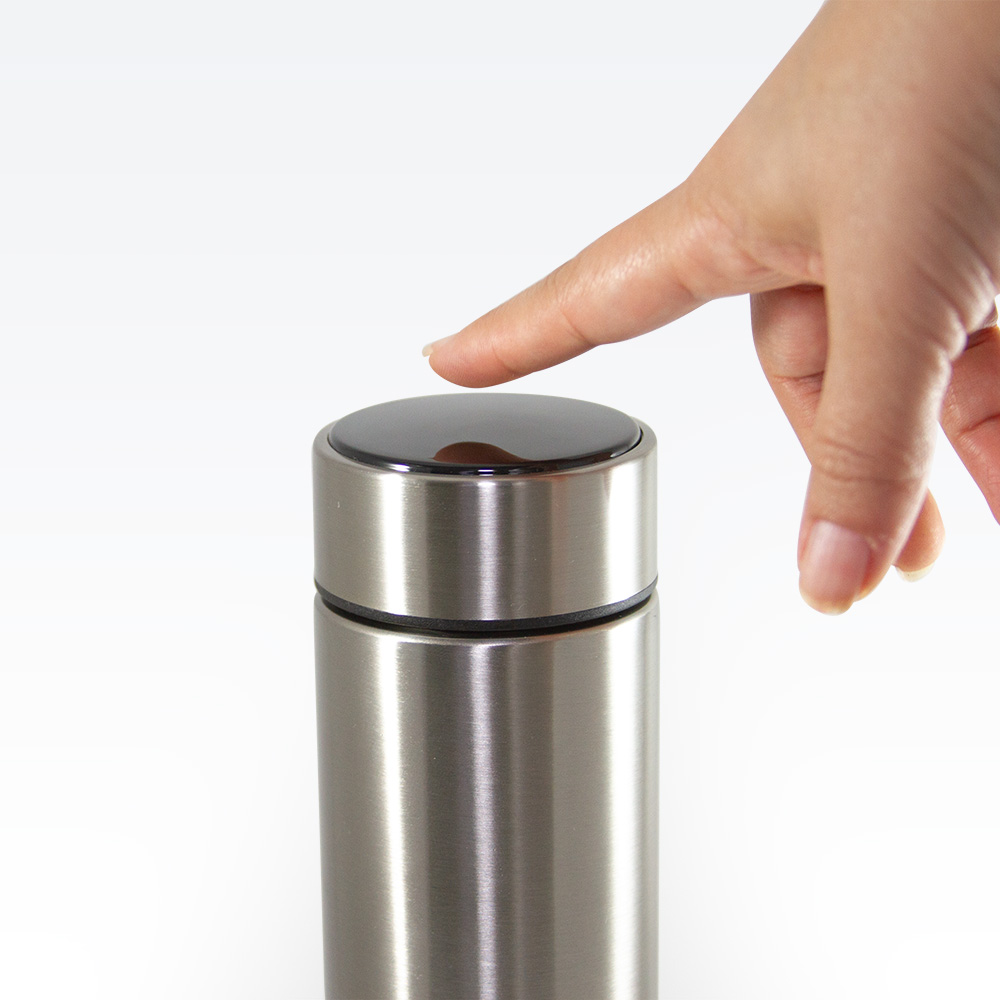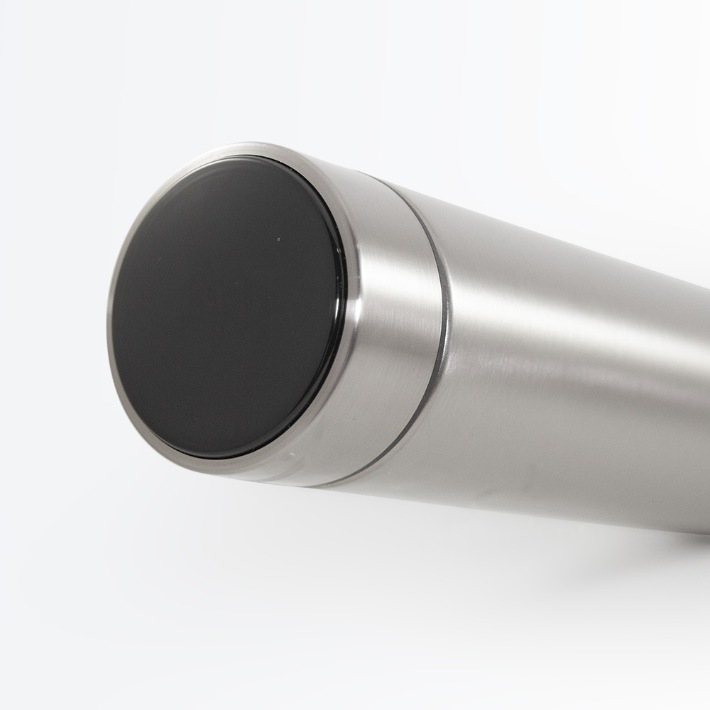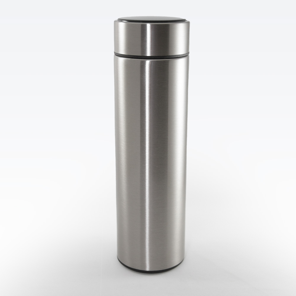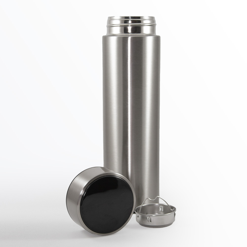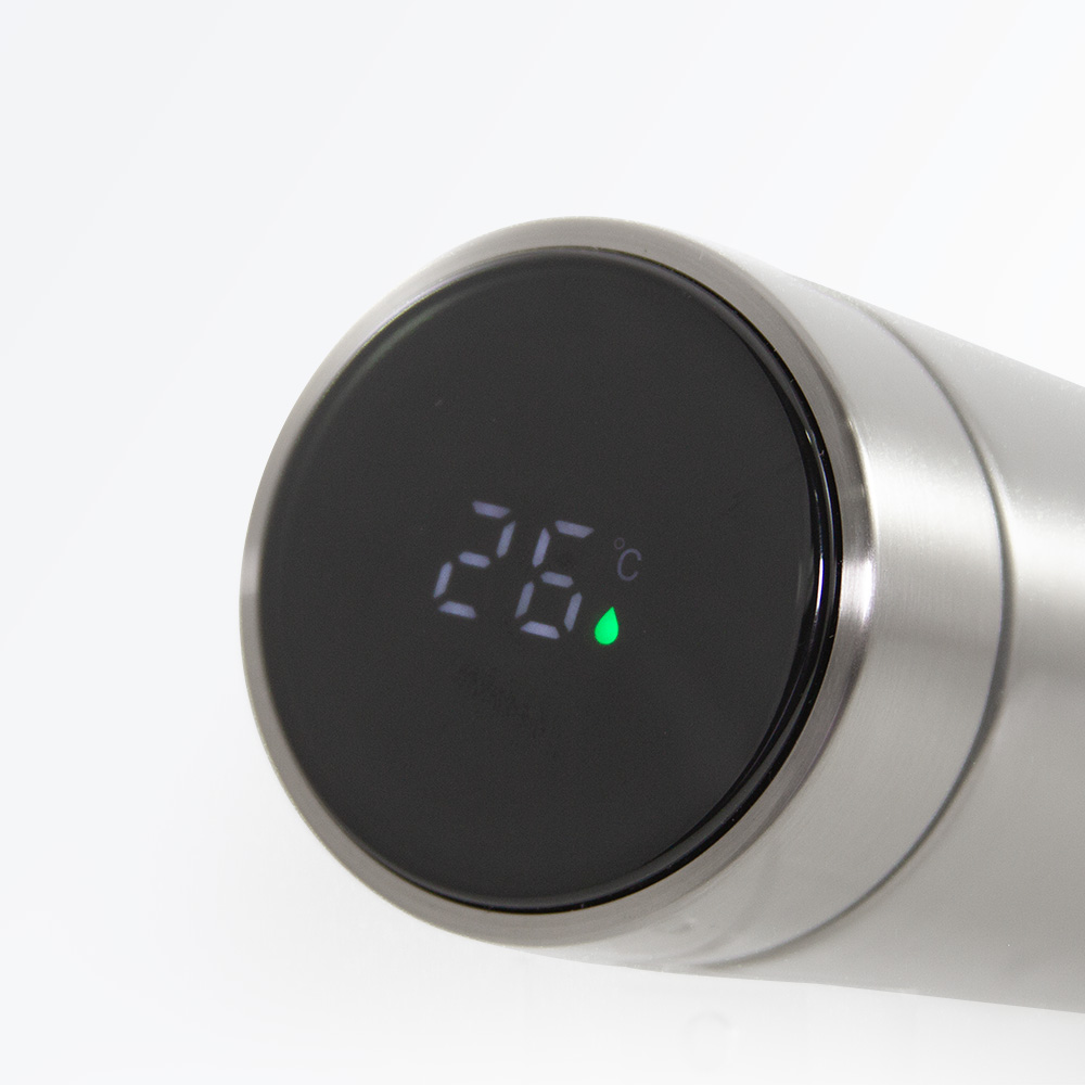 PLOCK Termo de acero inoxidable de doble pared insulada al vacío para mantener las bebidas frías o calientes por más horas. Tapa con patalla led con sensor de temperatura para tu bebida. Incluye batería con duración de 500 días. Capacidad de 500 ml.