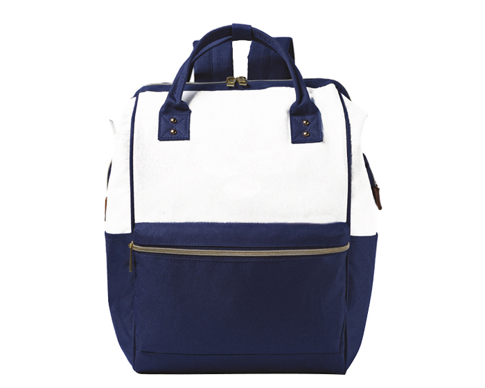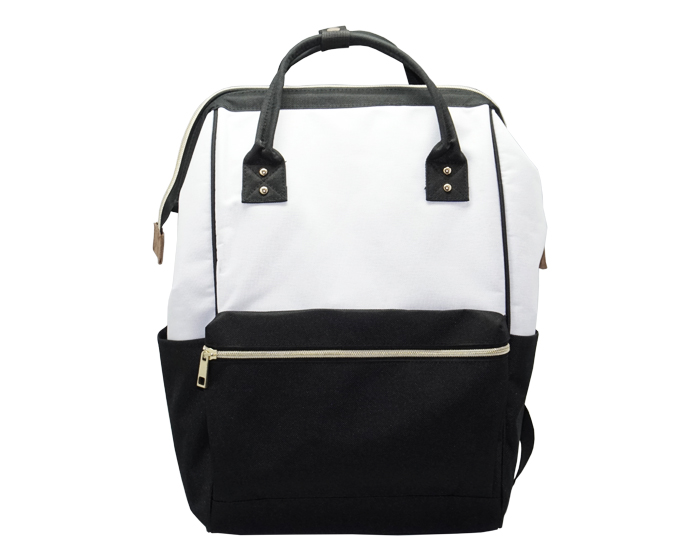 DIVEH - Mochila bicolor tipo bolsa. Cuenta con correas superiores que se fijan mediante un broche de presión. Varilla interior en el cierre principal para una mejor apertura. Compartimento frontal con cierre y compartimientos laterales. Respaldo acolchado, correas ajustables y los cierres en color dorado.