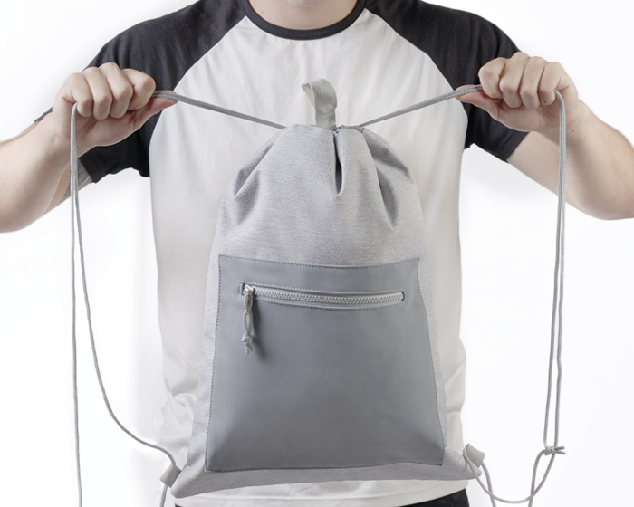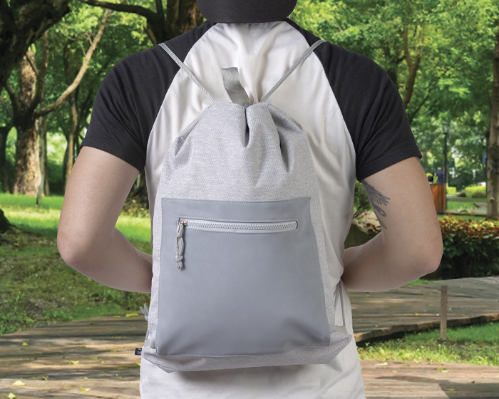 DUSTIN - Morral con tejido texturizado e interior cosido, compartimento frontal con textura y cierre, cuenta con jaretas ajustables y asa para transportar.