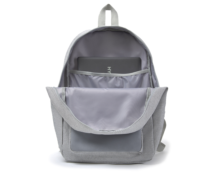 DARWIN - Mochila con tejido texturizado, cuenta con doble cierre en la cubierta principal, interior con forro cosido y espacio para laptop (16 pulgadas), compartimento frontal con textura y cierre, compartimento lateral con resorte, respaldo y tirantes ajustables acolchados. cuenta con asa para transportar.