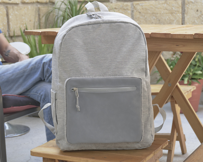MATERIAL: Poliéster Tejido/PU/Poliéster 210D MEDIDAS: 30 x 43 x 14 cm IMPRESION: SE MED. EMPAQUE: 47 x 44 x 51 cm PESO EMPAQUE: 10.7 kg PIEZAS EMPAQUE: 25