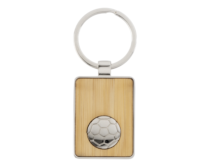 MEZZI - Llavero de bambú con balón metálico de futbol de soccer. Presentación: Caja individual.