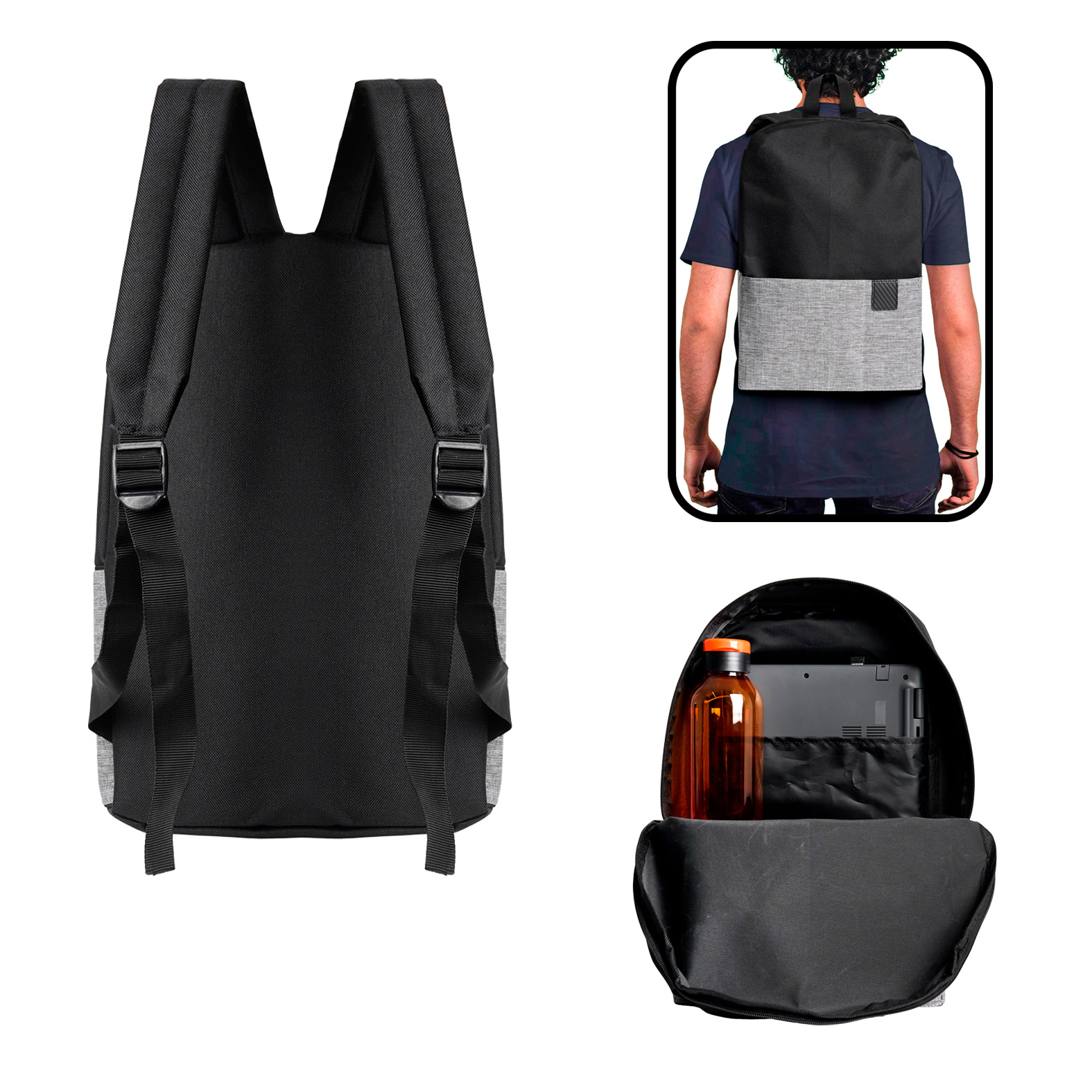 IRWIN Mochila con compartimento principal y porta laptop, bolsa frontal con cierre, asa superior y correas.
