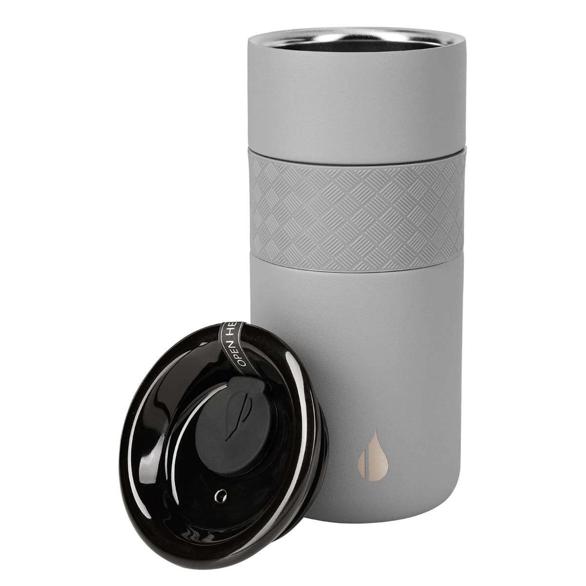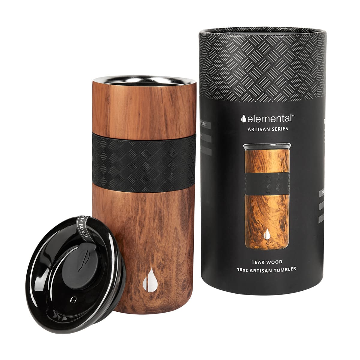 TERMO ARTISAN - Tecnología TrueBarrier™ que usa aislamiento de triple pared. Doble pared de acero inoxidable y una capa de revestimiento de cobre. Cerrado al vacío. Material BPA free. Tapa de cerámica con tapón de seguridad, su forma evita derrames y quemaduras al tomar. Banda de silicón texturizada antiderrapante. Compatible con portavasos. Base antiderrapante. Mantiene temperatura caliente 6 hrs y fría 18 hrs aproximadamente. Incluye caja individual.