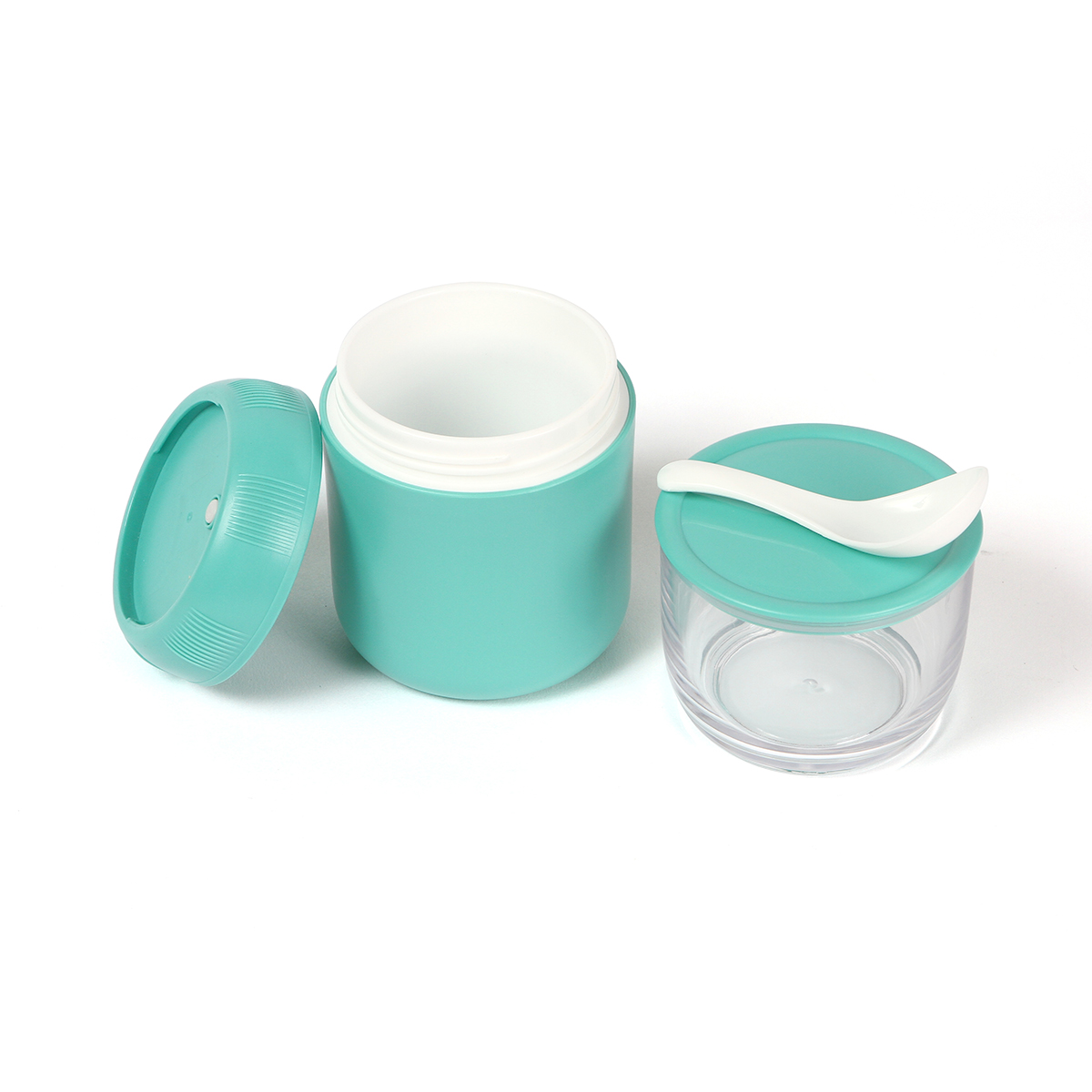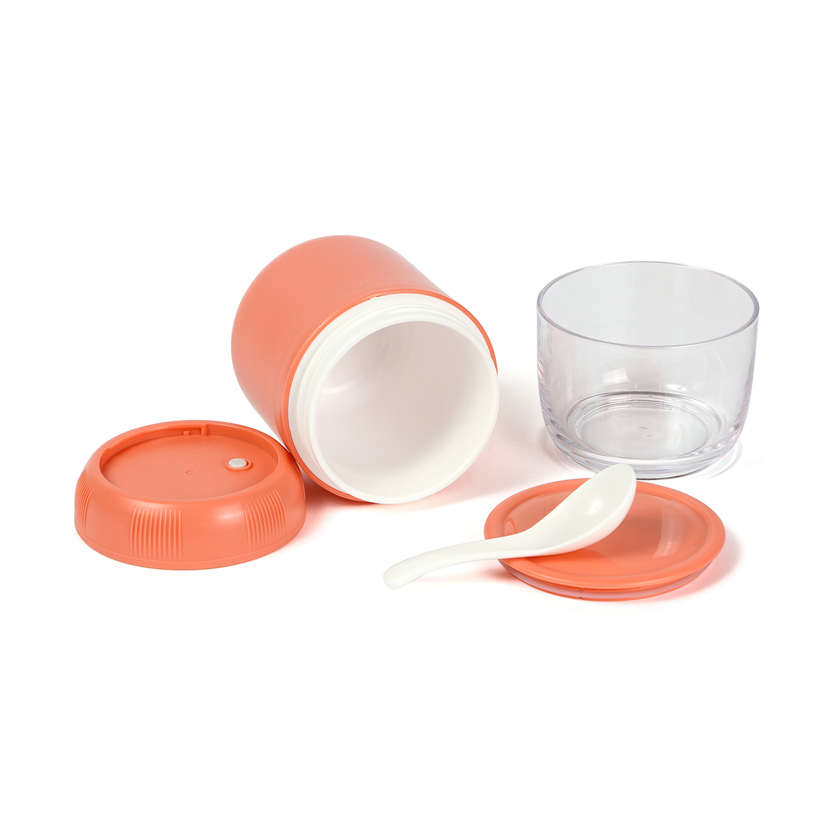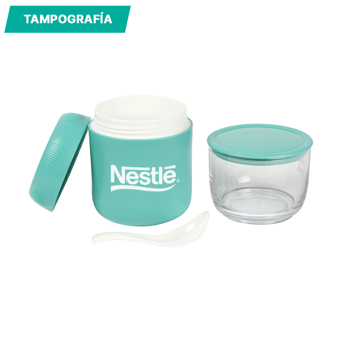 Contenedor Grimsby. - Contenedor de alimentos fabricado en polipropileno (PP). Incluye dos recipientes pequeños, uno de ellos traslúcido y una cuchara. Capacidad por ambos contenedores es de 710 ml. Contenedor grande: 380 ml. Contenedor pequeño: 330 ml.