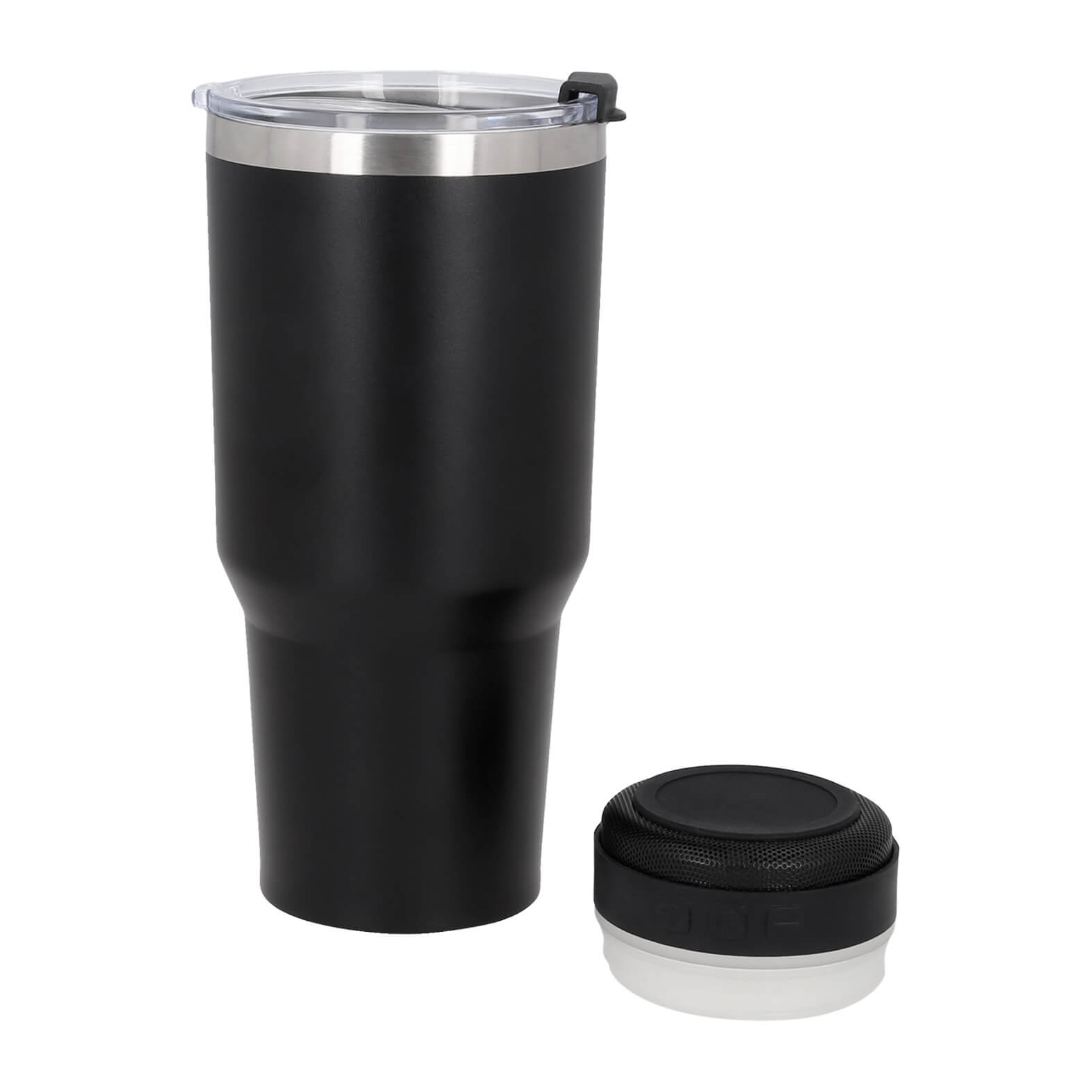 WEST Termo con doble pared de acero inoxidable, insulado al vacío que cuenta con bocina bluetooth con controles de volumen, botón de reproducción, efectos de luz y micrófono para contestador de llamadas. Incluye cable tipo C. (La bocina es removible de la base del termo).