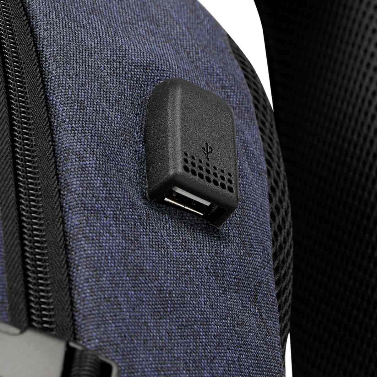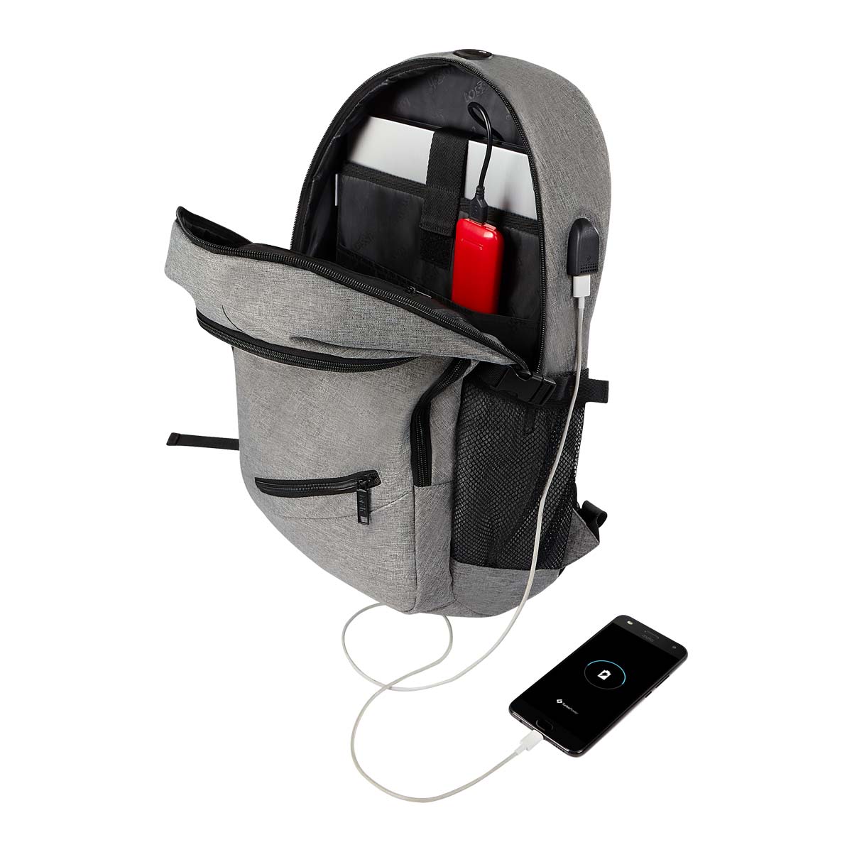 MOCHILA SLAVONSKY - Mochila con salida USB (se requiere conectar a batería portátil) para cargar smartphone. Bolsa principal con espacio para laptop de 17" y tablet. Bolsa frontal con organizador y 2 bolsas frontales con cierre. 2 Bolsas laterales de red con broches ajustables de plástico. Salida para audífonos. Aditamento especial trasero para poner en trolley. Placa metálica removible para fácil grabado. Respaldo y tirantes acojinados.