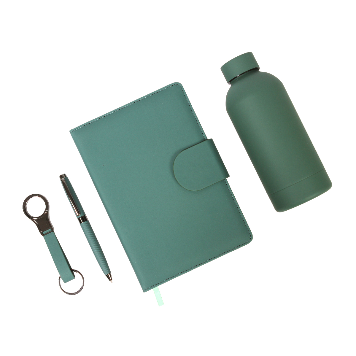 Set Badcall. - Set ejecutivo 4 en 1. Incluye libreta de 100 hojas de 80?g, bolígrafo tipo ball pen fabricado en acero inoxidable con tinta de escritura en color negro, llavero fabricado en PU y acero y termo de 350?ml fabricado en acero. Elegancia y funcionalidad en un solo paquete. Ideal para regalar o usar a diario.