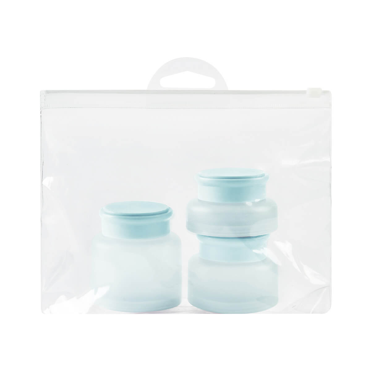 SET DE CONTENEDORES ZUREN - Set de contenedores de plástico para viaje. Ideales para almacenar productos de cuidado básico. Incluye bolsa con cierre zip.