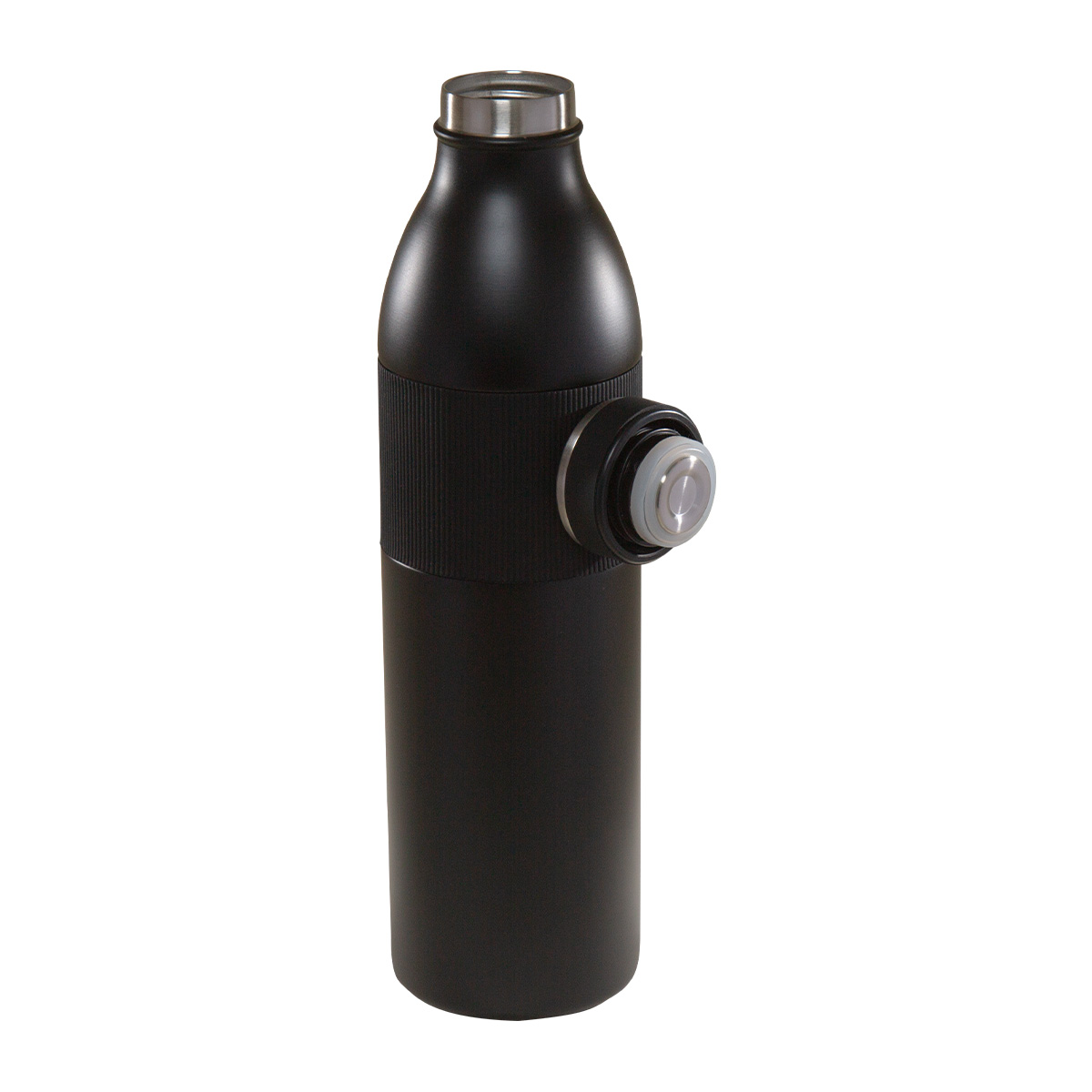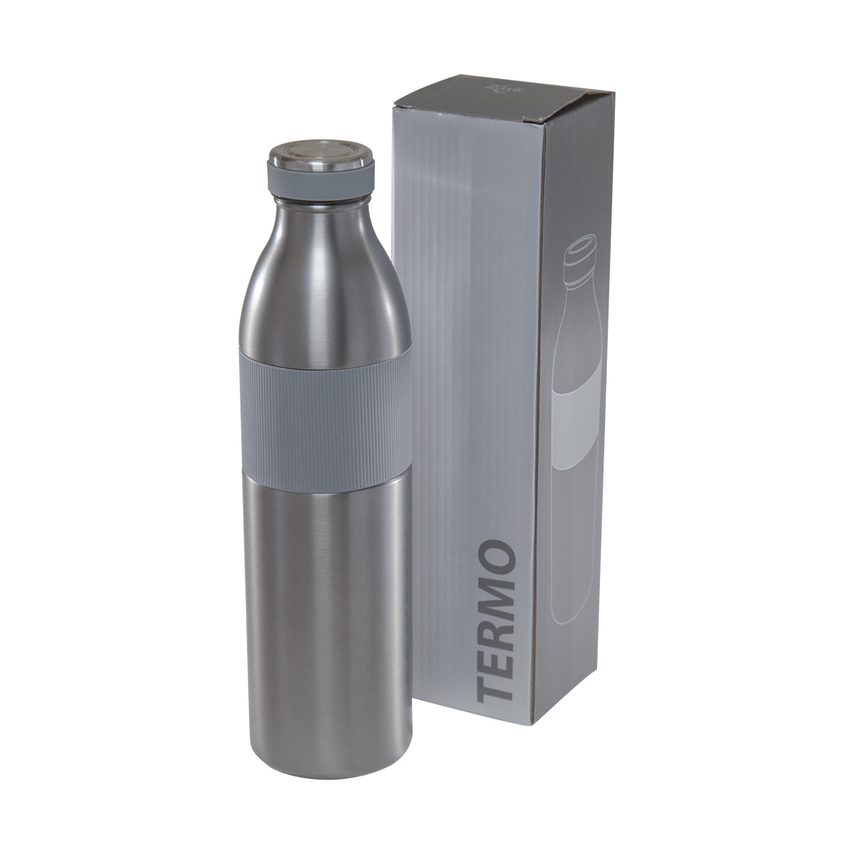 TERMO AIMANT - Doble pared. Cerrado al vacío. Pared interna y externa acero inoxidable. Tapa con sistema de rosca imantada. Banda de silicón texturizada antiderrapante. Mantiene temperatura caliente 8 hrs y temperatura fría 12 hrs aproximadamente. Incluye caja individual.