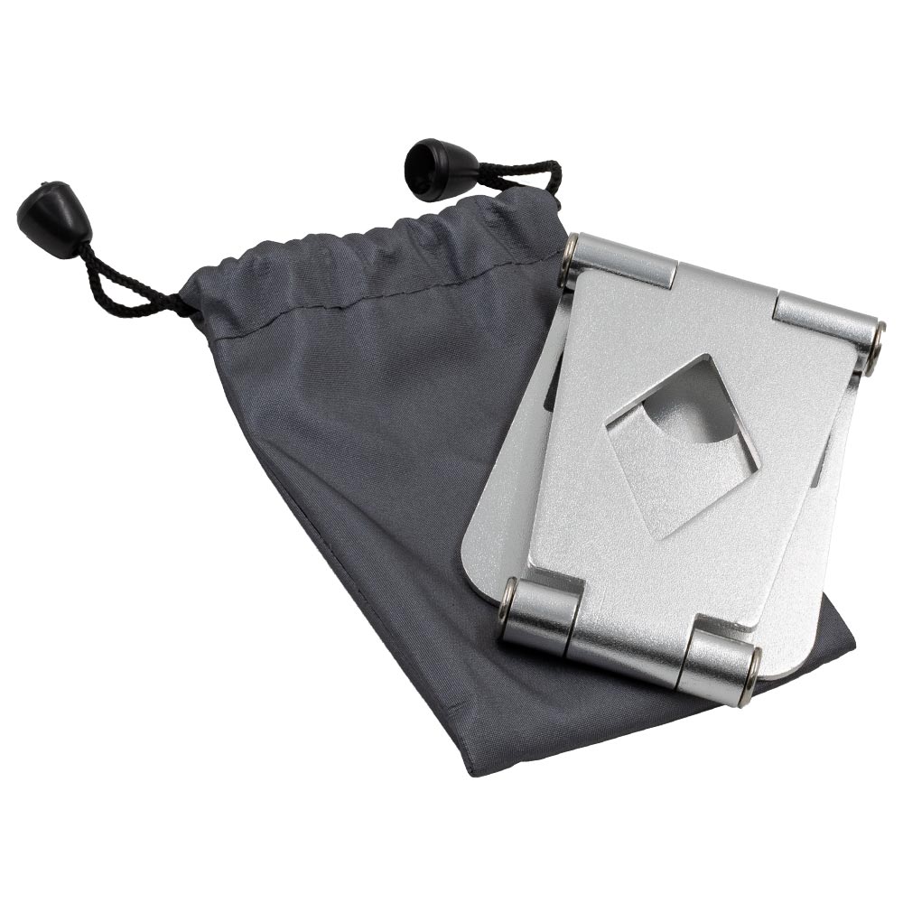 SOPORTE DE ALUMINIO PORTATIL AJUSTABLE Soporte de aluminio con ángulo de 270º. Compatible con dispositivos de 3.5 a 10 pulgadas.