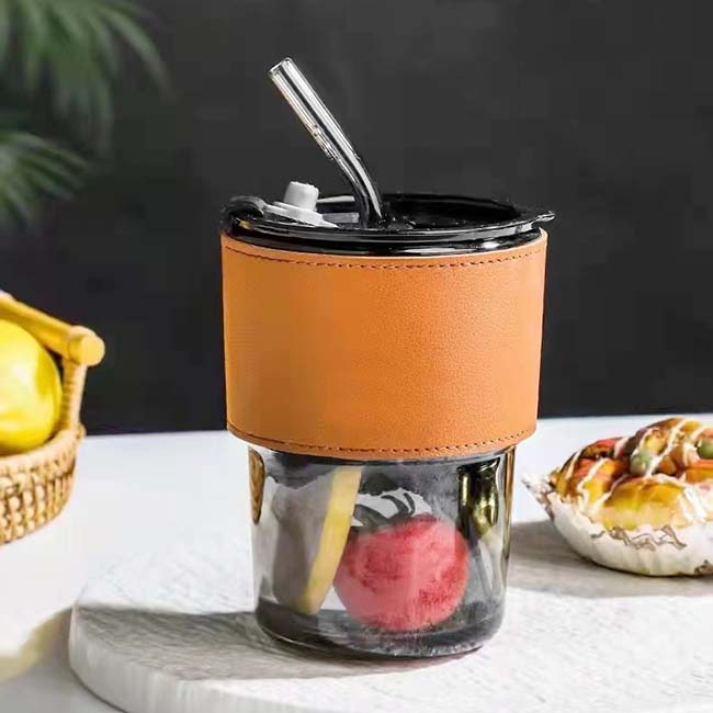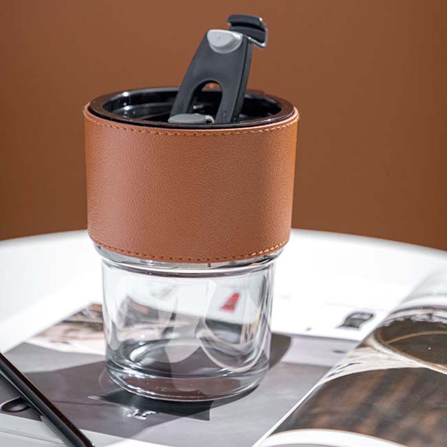 Vaso Capuchino Vaso Capuchino Capacidad : 350 ml Manga protectora en curpiel. Incluye popote. Tapa con lengüeta en cierre a presión. Colores: Café