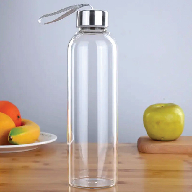 Botella Lima Botella Lima • Capacidad: 750 ml • Funda protectora antiderrapante en la base. • Tapa en rosca con lengüeta para sujetar. • Color disponible: Transparente. Material: Vidrio Impresión: Full Color 360 Regular, Láser, Tampografía, Full Color 360 Manga