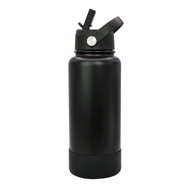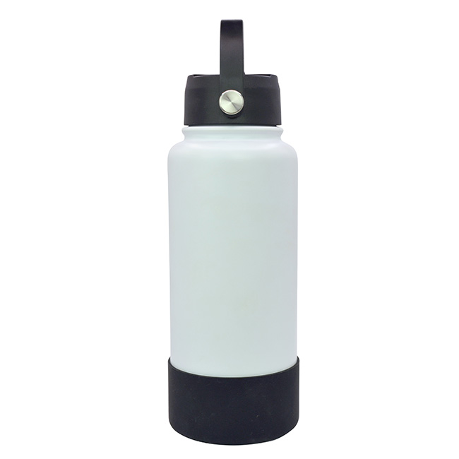 Termo Sabino Termo Sabino • Capacidad: 1 litro • Sistema de doble pared al vacío para conservar temperaturas por más tiempo. • Tapa en rosca con asa rotativa, boquilla deslizante y popote. • Incluye funda protectora antiderrapante en la base. • Colores disponibles: Blanco y Negro Material: Acero inoxidable Impresión: Full Color 360 Regular, Láser, Tampografía, Full Color 360 Manga