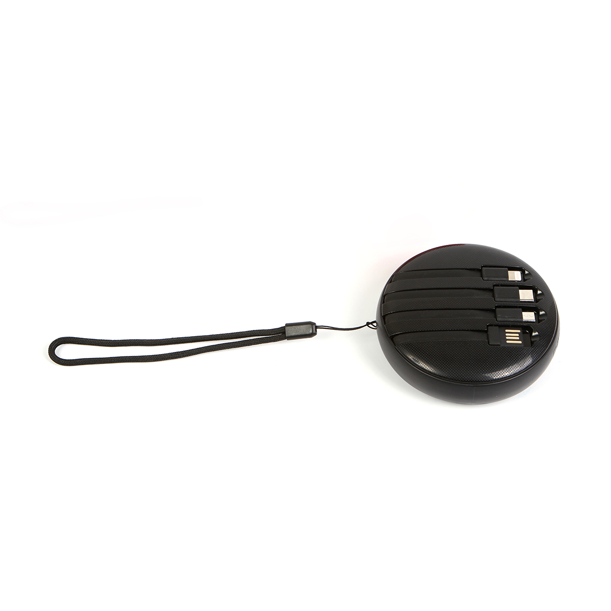 Power bank Bimini. - Power bank con diseño circular, fabricada en plástico ABS, un material duradero y resistente, incluye 4 cables de carga integrados, cuenta con correa para fácil transporte. El diseño circular no solo es estéticamente atractivo, sino que también aporta una ergonomía única. Capacidad de 10,000 mAh.