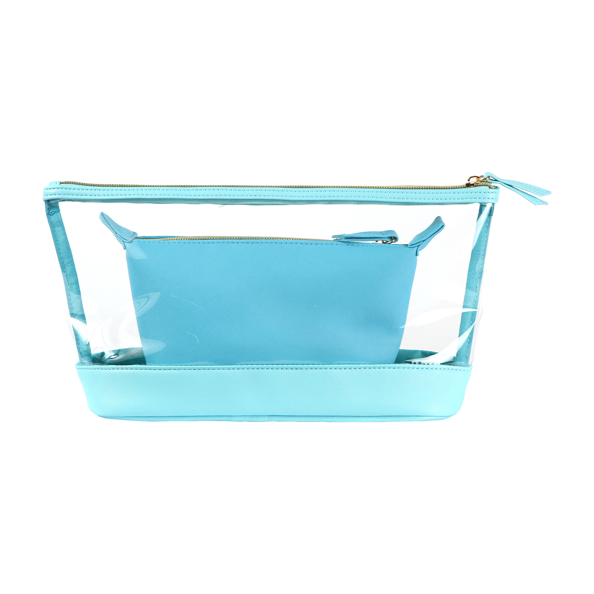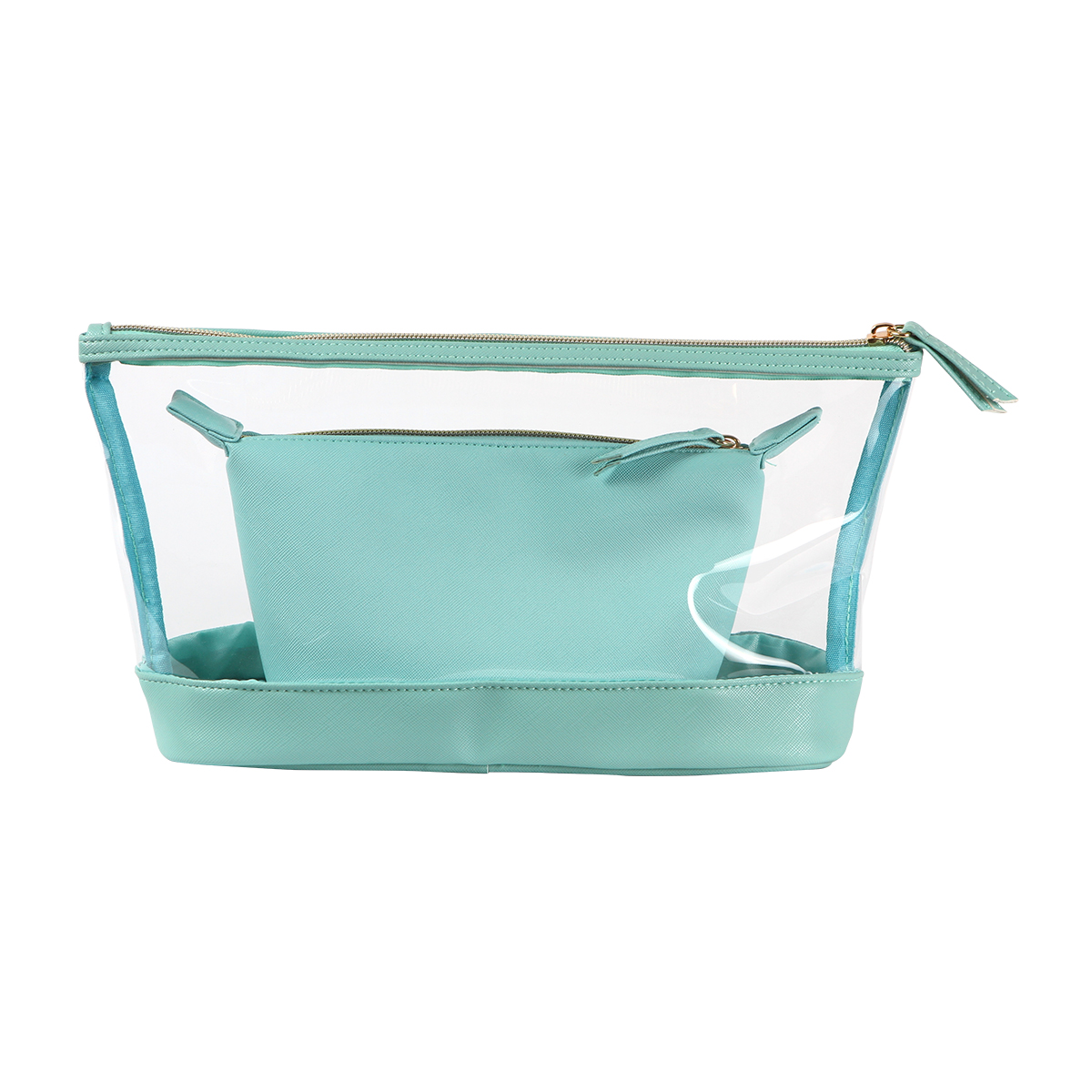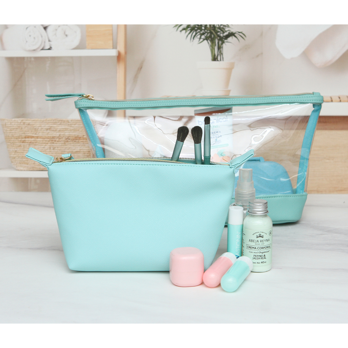 Cosmetiquera Dilijan. - Organiza tus esenciales de belleza y cuidado personal con este práctico juego de dos cosmetiqueras, ideal para viajes o uso diario. Incluye una cosmetiquera grande fabricada en plástico PVC transparente, perfecta para visualizar y acceder rápidamente a su contenido, con cierre seguro y diseño resistente. La segunda es una cosmetiquera pequeña fabricada en curpiel, con un forro interno de poliéster que protege tus productos, y cierre superior para mantener todo en orden. Su tamaño compacto la hace ideal para llevar en la bolsa o como complemento con la cosmetiquera grande. Llévalas juntas o por separado, y mantén todo lo que necesitas siempre a la mano con estilo y practicidad. Compactas, resistentes y ligeras."