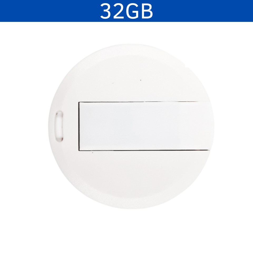Memoria USB con forma de botón, su diseño hace imprimible toda su superficie.